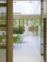 Pre členenie jednotlivých kancelárií a konferenčných miestností spoločnosť Spink Property stavila na chodbové steny RF od firmy Bene. Tento elegantný priestorový systém umožňuje na jednej strane rozdelenie miestnosti na získanie rôznych funkcií kancelárskeho priestoru a súčasne používateľovi umožňuje túlať sa očami po celom poschodí. Sklené elementy zabezpečujú možnosť nerušene nazerať do kancelárií a štúdia. Skutočná kvalita systému Bene RF – jasné a pokojné plochy – sa prejavuje vo svojej dokonalosti až vtedy, keď je systém nainštalovaný. Upevnenie sklených elementov len na strope a dlážke (bez vertikálnych spojovacích prvkov) umožňuje optickú kontinuitu sklených stien. Dvojvrstvové prevedenie elementov zabezpečuje akustickú izoláciu. Počas konferencie možno vidieť jej účastníkov – sediacich na hliníkových stoličkách s bielou sieťkou okolo okrúhlych sklených stolov od firmy Foster –, ale von sa nedostane žiadny zvuk. To vytvára pokojnú, avšak dynamickú pracovnú atmosféru.