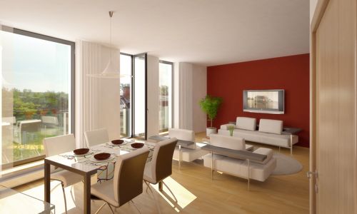 The five-storied house will host 37 housing units of different layouts, from 2 rooms + kitchenette to 4 rooms + kitchenette, with dimensions from 60 to 110 square metres. The parterre and the first floor will also offer commercial areas of 800 square metres in total, divided into eight units, the biggest of them being the above-mentioned double–floor café; the café space with an area of 240 square metres is sold at CZK 17 million.