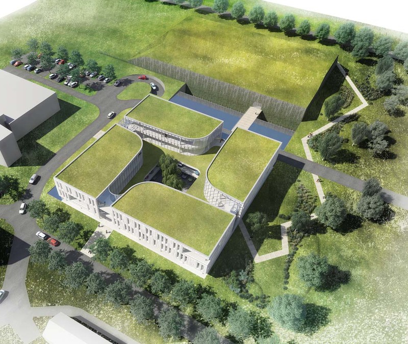 - Laserové centrum ELI Dolní Břežany – Soutěžní návrh. Administrativní budova s vnitřním otevřeným dvorem, která je mostem přes vodní plochu spojená s podzemní laboratoří.