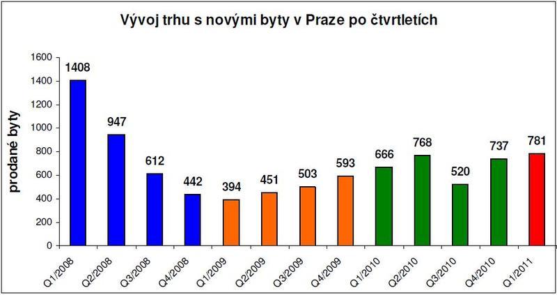 Celkem 781 nových bytů se v Praze prodalo během prvního čtvrtletí letošního roku. Vyplývá to ze statistik developerské společnosti Ekospol, která monitoruje developerské projekty s 50 a více byty v katastrálním území Prahy. Celková nabídka všech nových bytů v Praze dosáhla k 31.3.2011 čísla 7399 – v tom jsou započteny byty ve fázi prodeje nebo probíhající výstavby a také byty dokončené. Počet prodaných bytů tedy znamená, že se v Praze během prvního čtvrtletí prodalo lehce přes 10 % celkové nabídky. Z hlediska dlouhodobého vývoje jde o nejlepší výsledek, který pražský trh novostaveb během posledních dvou let zaznamenal. Více bytů bylo naposledy prodáno v druhém čtvrtletí roku 2008, v době, kdy se celosvětová hospodářská recese teprve blížila do střední Evropy. „Srovnání výsledků posledního čtvrtletí s celým loňským rokem napovídá, že hlavní nápor poptávky, která by měla sílit ruku v ruce s blížícím se termínem zvýšení spodní sazby DPH z 10 na 14 procent, zatím ještě nepřišel,“ komentuje výsledky prodeje Evžen Korec, generální ředitel Ekospolu.