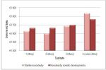 Z najnovšieho prieskumu medzinárodnej spoločnosti Jones Lang LaSalle možno pozorovať rozdiely vo výmere a cenách medzi tzv. „staršími“ a „novšími“ bratislavskými novostavbami. Bratislava momentálne disponuje počtom viac ako 3,300 voľných bytov v novostavbách, z ktorých 40% predstavujú byty novostavieb uvedených na trh v priebehu posledných deviatich mesiacov (t.j. projekty nového developmentu). Výmera najpredávanejších 2 a 3– izbových bytov v rámci projektov nového developmentu je oproti starším novostavbám nižšia v priemere o 16%. Novopostavané, 2– izbové byty sú lacnejšie rovnako o 16%. Väčší rozdiel v cene – až 20% pozorujeme pri 1 a 3– izbových bytoch, pri 4– izbových dokonca až 30% (opäť v prospech nového developmentu). Pri prepočte cien za m2, je priemerná cena nových projektov naopak vyššia o jedenásť eur.