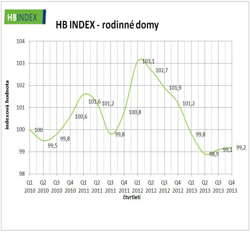 Vývoj Indexu cen nemovitostí Hypoteční banky (HB INDEX) v loňském posledním čtvrtletí zřetelně signalizoval stabilitu, a to dokonce i u cen pozemků, které v předchozím období měly zřetelné tendence k růstu. Jediným typem rezidenčních nemovitostí, který přece jen nějaký pohyb cen vykázal, byly rodinné domy. Jejich ceny vzrostly, ovšem jen o zanedbatelných 0,1 %, když za celý loňský rok narostly o 2 %. Ceny bytů přitom meziročně poklesly pouze o 0,2 %, když ceny pozemků už tradičně stoupaly a za minulý rok si připsaly zvýšení své tržní hodnoty o 2,1 %.