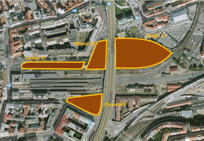 Má tři části. Ta první se týká území podél ulice Na Florenci, je to asi třicetimetrový pruh souběžný s kolejemi, končící po mírném zakřivení u magistrály, také tuto část označujeme jako oblast 1 a 2. To se nacházíme na území Prahy 1. V tom místě plánujeme standardní uliční zástavbu, čili tam vznikne „normální“, běžná městská ulice. Není důvod, aby v naprostém centru města byla ulice, kde jsou na jedné straně domy a na druhé jakési území nikoho a k ničemu. Výstavba nových budov má také smysl pro ČD a hlavně pro město. Parter těchto nových budov, které nejspíš budou mírně nižší než nová budova Florentina na protější straně, má sloužit také pro dopravu na letiště. Je zcela normální a běžné, aby ve velkoměstě, jakým Praha je, vedla z centra cesta jedním dopravním prostředkem přímo na letiště. Vybudování tohoto spojení přivede na nádraží a tím do celé lokality velmi početnou a atraktivní klientelu pro obchody a služby, nemluvě o komfortu, který to návštěvníkům Prahy přinese.