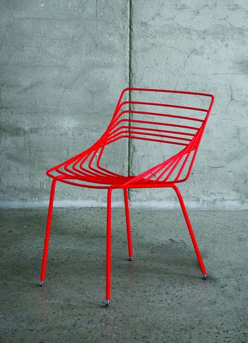 Kovová židle využívá principu řazení uzavřeného obdélníkového tvaru ocelového drátu k vystavění základní kostry. Vějířovitá struktura tvoří současně sedací část i opěrku židle, čímž má dostatečnou tuhost při zachování ergonomických požadavků. Ve spojení se subtilními kovovými nohami a výraznou barevností se židle stává jednotným celkem vysokých estetických kvalit.