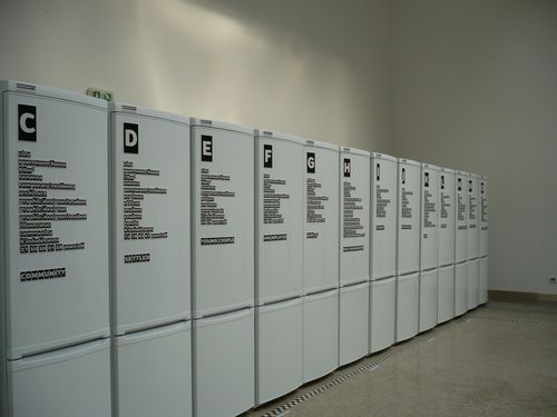 Je tam těch velkorysých kompozic více než dvacet a mají zvláštní doprovod. Architekti stále mají potřebu lidi poučovat, vysvětlovat své projekty a postoje. Betsky jim v tom vyšel vstříc. Za dělícími stěnami z malých typových prvků (které se jako znak objevují na letošní výstavě všude) jsou umístěny desky s autorskými texty. To však nestačí, z obrazovek promlouvají sami autoři textů, většinou velmi vážně, jen občas s nadhledem vyslovují svá prohlášení, vyznání a manifesty. Upřímně si myslím, že to je nejlepší cesta, jak znemožnit autora i jeho myšlenky; architekti tak touží po tom, aby je vždy všichni brali vážně, až si tím sami ubližují.