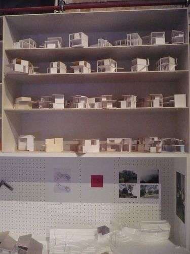 Pro výstavu si kurátorka Krasny vybrala ateliéry, kde mohla očekávat velkou rozmanitost pracovních nástrojů, a lze konstatovat, že se jí to skutečně podařilo. I když – poctivá tužka je přítomna téměř vždy. Tlustá, měkká, přesně jako u Alvara Aalta, který kreslil tužkou označení 6B, samozřejmě „koh-i-noorkou“ (tento úchvatný a dodnes nepřekonaný architektský nástroj poprvé použil v roce 1795 Josef Hardtmut). Ale nejen tužky, ty jsou možná příliš klasické. Taky třeba – rtěnka, která je prý pro rychlou skicu na pauzovacím papíře zcela optimální… Gaudí pracoval s provázkovými modely, které zatěžoval malými pytlíčky s pískem, dnes se někde pracuje se stavebnicí Lego a někde už jen s počítačem a CADem… A téměř cokoli mezitím je možné. Důležité je i prostředí, někde zcela neformální, např. Lux Guyerová (první švýcarská architektka, která otevřela svou vlastní kancelář) nejraději navrhuje v posteli; někde v kanceláři nutně musí být orchideje (Lacaton a Vassal jsou přesvědčeni, že právě ony stimulují architektovo myšlení).