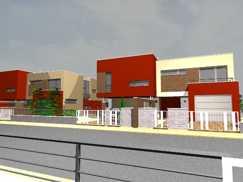 Maquires Development, s.r.o., developer well-known maker of the elaborated study, came with the proposal to joint needs of housing to one integer. The main motto of the project – besides ensuring housing mainly to young families – it also was to offer a family house for the price of a flat. Based on this idea the project of 15 semi-detached family houses lying in one street creating one project line arose at the beginning of year 2007. Their characteristic features are modern design, in spirit of which the entire locality is proposed and designed, and elements of high architectonic standard from the workshop of Ing. Arch. Petra Hriňa. The semi-detached houses with the living space from 105 to 135 m2 are designed like individually staying, involving two housing units, respecting needs of maximal privacy. The only common part – the central bearing partition is made from acoustically impervious- the so call acoustic blocks. The division fence divides outside entrances. The parking place belongs to each house in the frame of its own land, which can has from 199 m2 to 399 m2, or the garage, which is a part of the house. It only depends on a particular client, which alternative he will prefer.