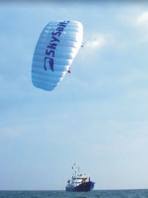 Německo: firma SkySails GmbH & Co. KG vyvinula systém pro využití větrné energie k pohonu námořních lodí. Tažný drak dokáže snížit spotřebu energie až o 10 – 35 %.