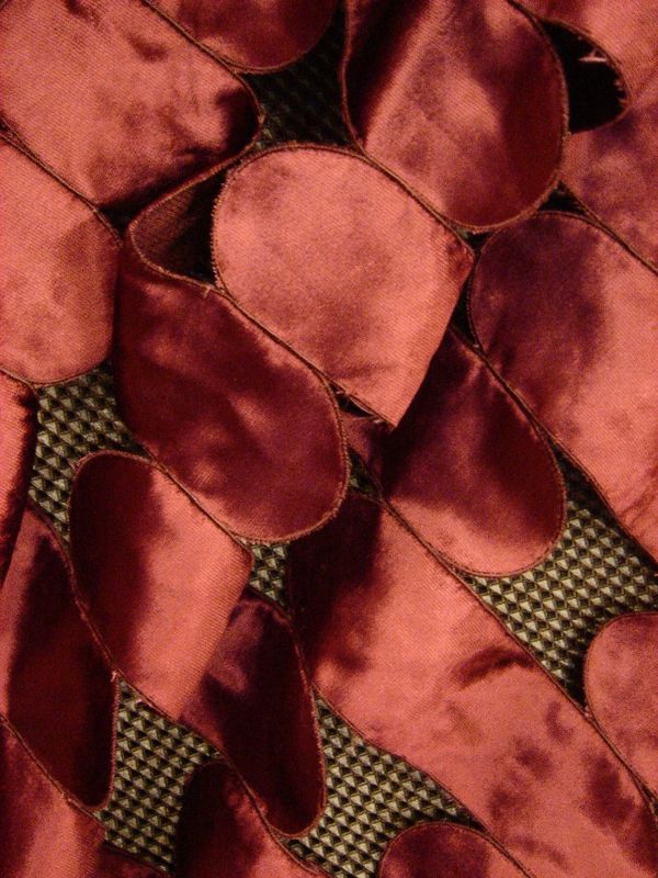 Pri dizajnovaní týchto látok sa pracuje aj s ďalšou formou spracovania, a tou je vyrezávanie rôznych geometrických tvarov do látky, resp. ich následné prišívanie, čo je síce veľmi komplikovaná technológia, ale efekt stojí naozaj za to. Lom svetla na takejto látke a zároveň 3D-efekt je v tomto prípade vždy iný, a tým aj jedinečný. Tak ako sa teda snažíme pekne obliekať svoje telo, to isté by sme mali dopriať aj nášmu interiéru a „zaodieť ho peknou košeľou“. Či už je to priestor obývačky s decentným dekorom alebo spálne s viac opulentným… V byte, v hoteli, či v kajute. Alebo honosným a gracióznym dekorom v divadle.