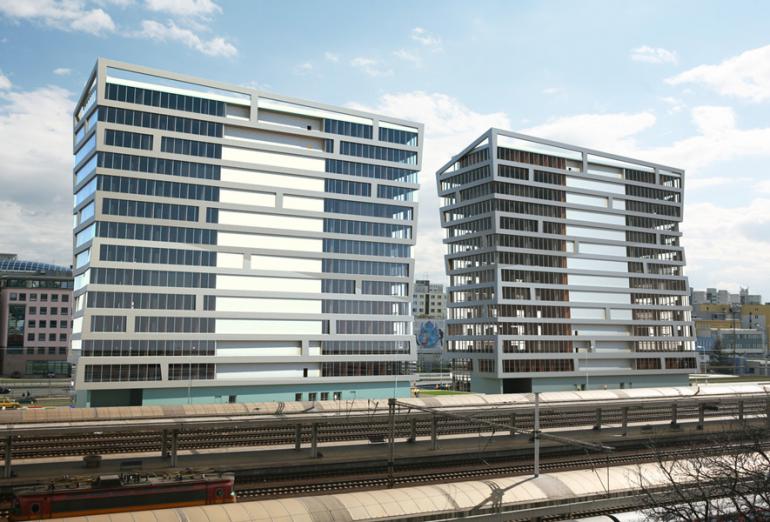 separate 14-storied towers offering each of 9 500 m2 of best equipped offices,