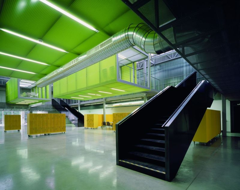 schoolroom (Ateliér Vyšehrad). The open space with inserted cells which are