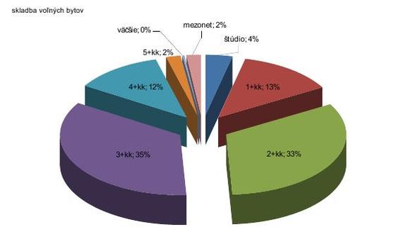 Long-awaited almost constant number of the free – ergo unsold apartments symbolizes the inadequacy of the current supply. Despite the optimal focus on the categories 2kk and 3kk, just these compose their significant part, because they are due to excessive area and unsuitable layouts unattractive, but expensive, and thus hardly marketable (as also illustrated by the pie chart on the composition of free apartments). The following tabular data on the size of available completed apartments are in fact a graphic explanation of this stalemate and so little the lesson for the future that modesty on all sides is never to the detriment.