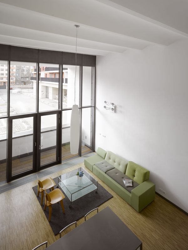 Fyzické propojení většiny místností z bytu vytváří skutečně unikátní prostor. V něm je ovšem izolace akustická či optická víceméně nemožná, takže spánek dětí či jenom cigareta může představovat problém. Do určité míry to platí i navenek. Rozlehlá okna – na rozdíl od řady jiných projektů – sice svou orientací potřebnou dávku intimity zajišťují, ale standardní lofty jsou opticky zcela otevřené do centrální chodby. „Řešení zástěn mezi lofty s chodbou prošlo několika fázemi. Od plné stěny, přes neprůhledné sklo a transparentní ocelovou konstrukci až po průhledné sklo. Předpokládáme, že optickou clonu si každý uživatel vytvoří podle vlastního uvážení,“ vysvětluje architekt Dub. Stejně „liberálně“ jsou pojaty střešní terasy, které jsou pohledově exponovány jak z bezprostředního okolí, tak nedalekého věžového bytového domu.