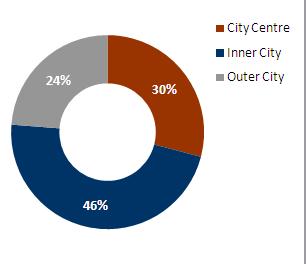 1 – Delenie administratívnej Bratislavy podľa BRF: City Center, Inner City,
