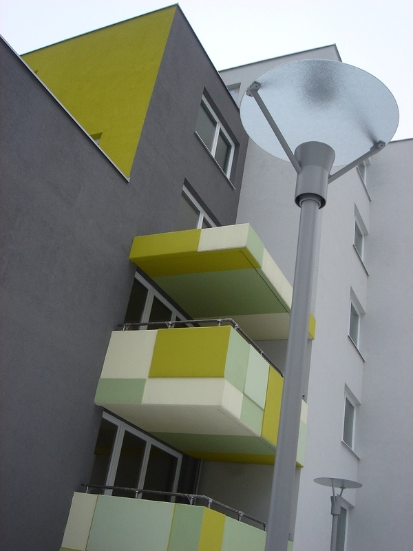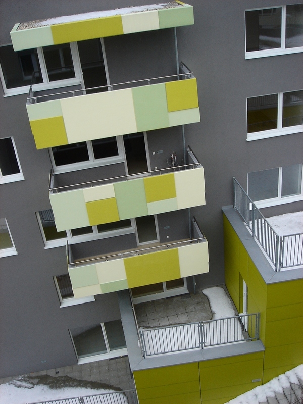 (s priestrannými terasami) a balkónové telesá s plastickou farebnou