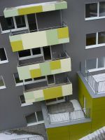 farebne definované jednak vybratia hmoty na posledných dvoch podlažiach