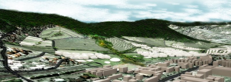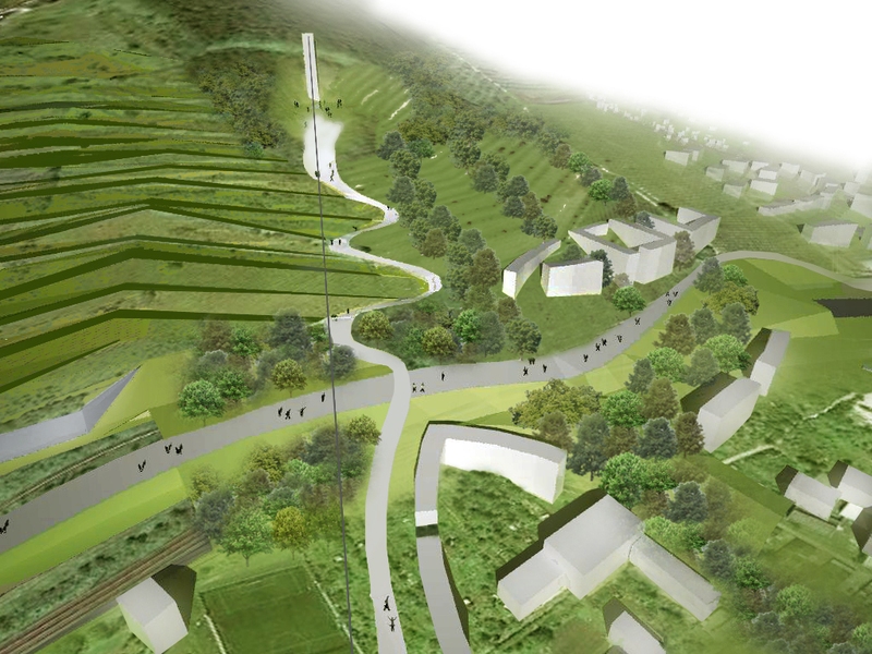 Dôležitým aspektom návrhu je eliminácia negatívneho lineárneho vplyvu železnice a na druhej strane pokus umožniť prírodným prvkom vniknúť do mesta a mestským do svahovitých vinohradníckych terás. To sa uplatňuje jednak lineárnym hmotovým výrazom objektov (občianska vybavenosť a v teréne zapustené parkovisko) a jednak štruktúrou kobercovej zástavby (rodinné domy).