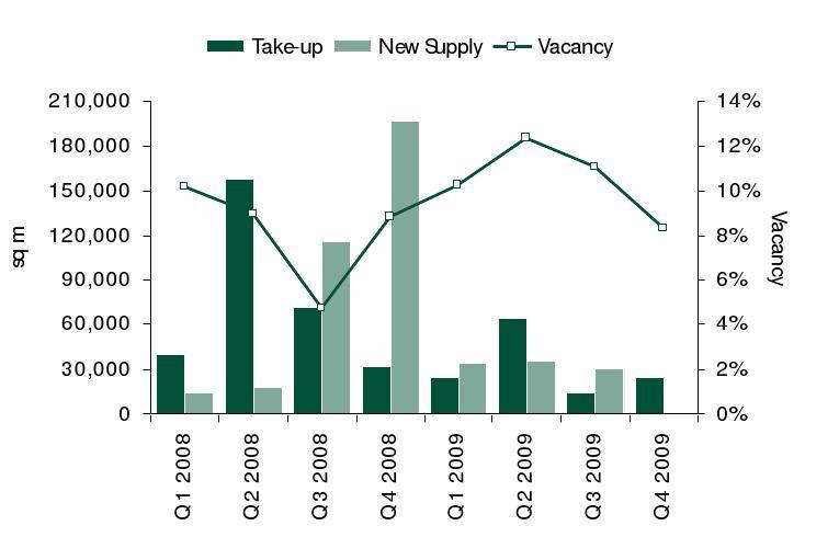 okolí klesla v roku 2009 o 56 % a predstavovala 117 341m2. Neobsadenosť