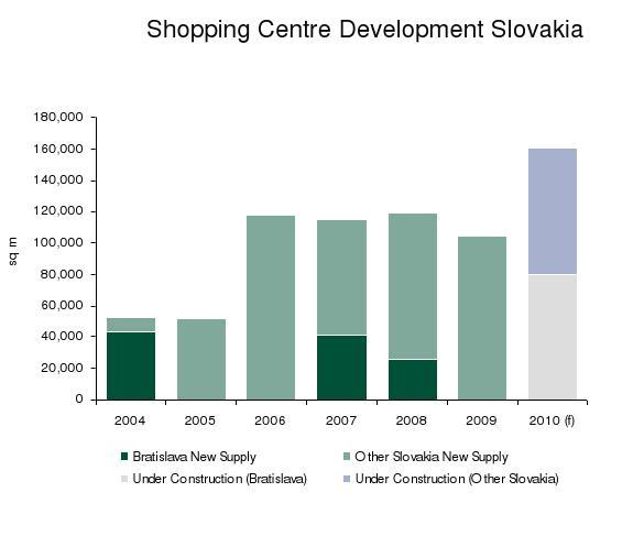 Posledný štvrťrok roku 2009 nepriniesol podľa CBRE žiadne nové projekty okrem jedinej stavby logistického centra Bratislava – Ivánka s rozlohou 2 800 m2. Rovnako sa žiadne projekty nedokončili, čo je pre Slovensko historicky najnižším „rekordom“. Celková plocha nových priestorov v roku 2009 dosiahla 99 579 m2, čo je v porovnaní s rokom 2008 pokles o 62 %. Príznačné pre rok 2010 bude zrejme to isté: žiadne nové projekty sa už nezačnú stavať.