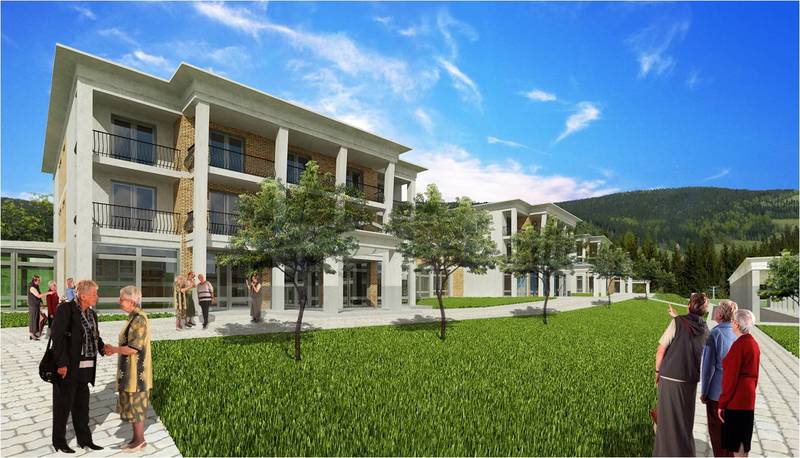 Samotná výstavba Mestečka pre seniorov prebehne po asanácii starej časti areálu v niekoľkých etapách: 1 – centrálna budova so 155 lôžkami, 2 – park s jazierkom, reštauráciou a športoviskami (tenis, minigolf), 3 – centrum obchodu služieb. 4, 5 – päť trojpodlažných bytoviek + 16 domov. Ako teda vidno, filozofia postupu je v tomto prípade presne opačná než u väčšiny rezidenčných projektov na Slovensku: najprv občianska vybavenosť, potom sťahovanie seniorov do bytoviek, aby ju mali poruke ihneď, a nie po dlhoročnom čakaní.