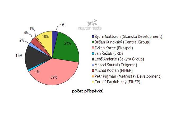 Za největší celebritu tuzemského developmentu lze označit majitele developerské společnost Central Group Dušana Kunovského, který přitahuje zájem médií i řadou „vedlejších“ aktivit. Jak ovšem vyplývá z analýzy společnosti Newton Media za období leden – květen tohoto roku, jako odborníka na bytový development média nejčastěji oslovují Evžena Korce ze společnosti Ekospol. A Leoš Anderle ze Sekyra Group je zase pro novináře autoritou v oblasti urbanistiky.