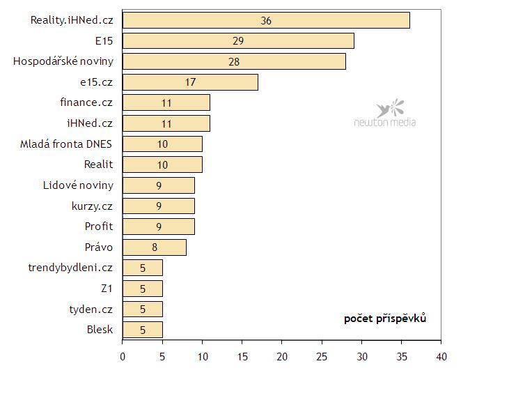 Graf znázorňuje média, která nejčastěji referovala o představitelích developerských firem.