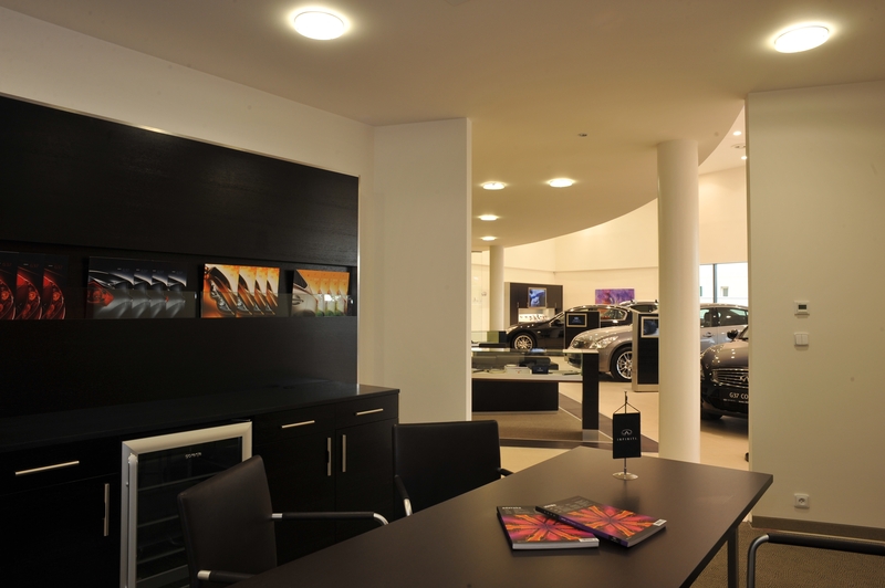Autosalony jsou sice jako architektonický typ maloobchodní prodejní jednotkou, ale v jejich poměrně širokém spektru jsou zcela unikátní. To je dáno i výjimečnými rozměry a cenou prodávaného zboží, způsobem prodeje a především snahou podpořit a prohlubovat povědomí o značce a její identitě. To je – samozřejmě vedle funkčnosti – i hlavním úkolem budov autosalonů a jejich architektury. „Celkový koncept, architektonický styl, i design interiérů vycházejí z manuálu platného pro všechny země, což značce Infiniti zajišťuje jednotnou prezentaci všude ve světě,“ vysvětluje Ivana Zimová, manažerka marketingu skupiny Auto Palace Group, která Infiniti Centrum Praha provozuje. Závaznost univerzálního konceptu nicméně neznamená, že autosalony značky jsou všude ve světě naprosto identické. Při jejich navrhování musí architekt vedle daných pravidel brát v potaz i záměr prodejce, velikost a typ trhu a v neposlední řadě i kvalitu a ráz pozemku a lokality vůbec. Univerzální standardy nicméně zaručují, že výsledek vždy odpovídá koncepci a charakteru značky a jejím produktům. A jakkoli to na první pohled nemusí být zřejmé, autosalony a samotné vozy značky Infiniti mají společného více, než by se na první pohled mohlo zdát.