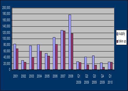 Graf 2 (King Sturge) – Vývoj ponuky a prenajatosti (nájomných transakcií)