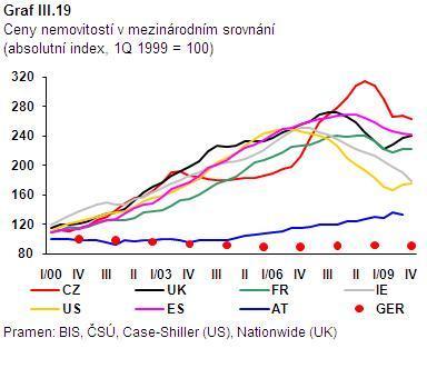 Pro segment rezidenčních nemovitostí ZFS konstatuje zhruba 5% propad cen v období od konce roku 2007. Ten byl také reakcí na předchozí strmý růst, který kulminoval v roce 2008 (v relaci k závěru roku 2007 vzrostly o 15 %) a který si vysloužil přízvisko „bublina“. Při pozorném čtení a sledování grafů ZFS se ale zdá, že o bublinu, tedy enormní a krátkodobý výkyv cen, možná ani tak nešlo. Základní scénář ZFS totiž počítá s tím, že by se ceny bytů i rodinných domů někdy v roce 2012 mohly vrátit na úroveň roku 2008. Podle ČNB je tento vývoj vysoce pravděpodobný, dvě horší varianty vývoje, které by vedly k dalšímu poklesu cen (v relaci k současnosti o 8, resp. 16 %) považuje za „nepříliš pravděpodobné“.