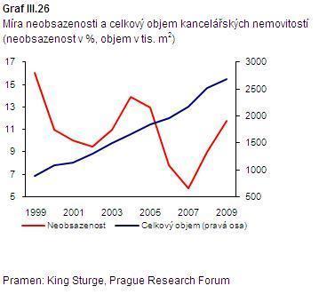Míra neobsazenosti a celkový objem kancelářských prostor