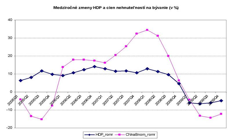 vývojom cien nehnuteľností na bývanie a medziročnými zmenami tvorby HDP