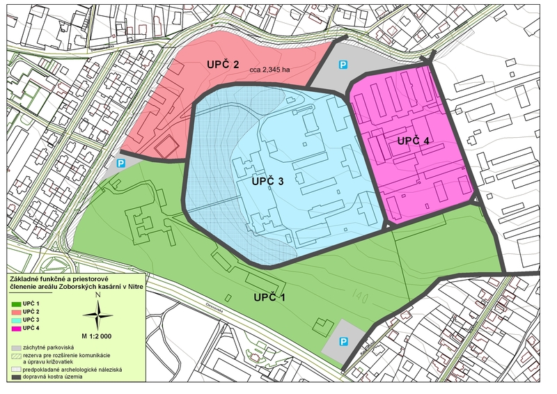 - Priestor bývalých kasární pod Zoborom – situovaný v polohe formujúceho sa mestského centra Martinský vrch, pre ktorý ÚP stanovil spoločensko-rekreačné funkcie.