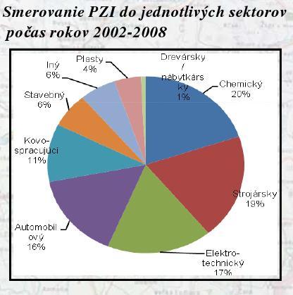 - Smerovanie PZI do jednotlivých sektorov v rokoch 2002 až 2008