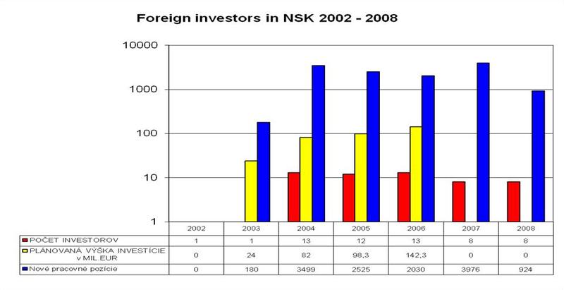 - Počet zahraničných investorov v NSK (vývoj v období 2002 až 2008)