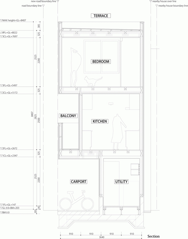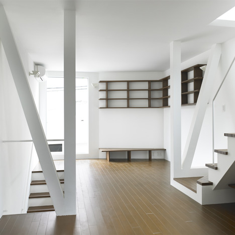 Dům Shimouma, první projekt japonského studia Kazuya Saito Architects, byl po čtyřměsíčním projektování a tříměsíční výstavbě dokončen na úzkém, něco přes 49 m² velkém pozemku v Tokiu. Dům s dřevěnou konstrukcí pro matku, syna a několik koček má tři podlaží a nabízí celkem 109 m² obytné plochy, kryté parkování a střešní terasu. V interiéru dominují přiznané dřevěné trámy, dřevěná schodiště a na míru vyrobený dřevěný nábytek.