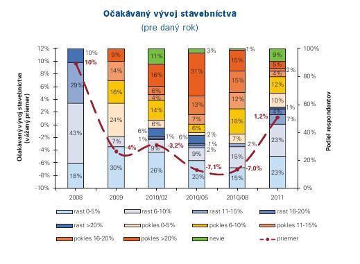 „Nepriaznivé očakávania sú hlavne vo vývoji zamestnanosti, keď viaceré firmy realizujúce najmä inžinierske stavby avizujú výrazné znižovanie počtu zamestnancov v priebehu 2. polroka 2010 z dôvodu spomalenia výstavby diaľnic a nízkeho dopytu po stavebných prácach aj v ostatných oblastiach stavebnej výroby,“ upozorňuje na príčiny pesimistických vyhliadok manažérov stavebných podnikov do ďalších období roku 2010 Dagmar Blahová, vedúca oddelenia stavebníctva, konjunktúry, vedy a techniky na Štatistickom úrade SR. Podľa Vlastislava Šlajsa z firmy Strabag dochádza na povolebnom Slovensku k prehodnoteniu priorít a stratégie ďalšieho vývoja dopravnej infraštruktúry a taktiež k PPP projektov súčasných i budúcich. V dôsledku vyostrovania konkurenčného boja bude podľa neho nevyhnutnosťou zvýšenie efektivity fungovania stavebných firiem spolu so skvalitnením rizikového manažmentu.
