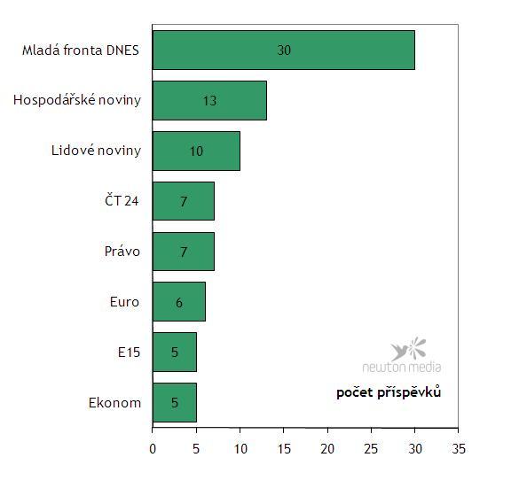 Nejvíce příspěvků, celkem 30, uveřejnila o nízkoenergetických stavbách MF Dnes. Největší zájem projevovala média o téma v září, za čímž stála rozmanitá paleta námětů.
