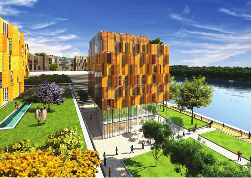 apartmánového domu River House a vertikálna administratíva na námestí.