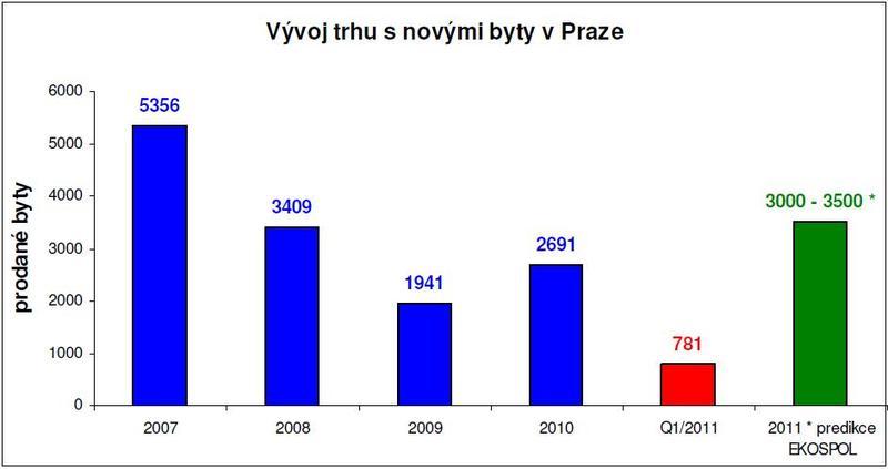 Celkem 781 nových bytů se v Praze prodalo během prvního čtvrtletí letošního roku. Vyplývá to ze statistik developerské společnosti Ekospol, která monitoruje developerské projekty s 50 a více byty v katastrálním území Prahy. Celková nabídka všech nových bytů v Praze dosáhla k 31.3.2011 čísla 7399 – v tom jsou započteny byty ve fázi prodeje nebo probíhající výstavby a také byty dokončené. Počet prodaných bytů tedy znamená, že se v Praze během prvního čtvrtletí prodalo lehce přes 10 % celkové nabídky. Z hlediska dlouhodobého vývoje jde o nejlepší výsledek, který pražský trh novostaveb během posledních dvou let zaznamenal. Více bytů bylo naposledy prodáno v druhém čtvrtletí roku 2008, v době, kdy se celosvětová hospodářská recese teprve blížila do střední Evropy. „Srovnání výsledků posledního čtvrtletí s celým loňským rokem napovídá, že hlavní nápor poptávky, která by měla sílit ruku v ruce s blížícím se termínem zvýšení spodní sazby DPH z 10 na 14 procent, zatím ještě nepřišel,“ komentuje výsledky prodeje Evžen Korec, generální ředitel Ekospolu.