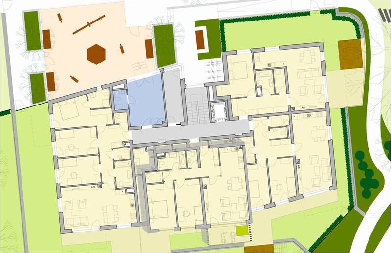 - Súkromné domy resp. byty dopĺňajú spoločné priestory a priestranstvá.