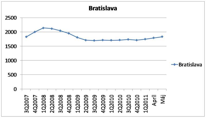 3) Graf 1: Vývoj priem. ceny 1 m2 dvojizbového bytu v Bratislave za
