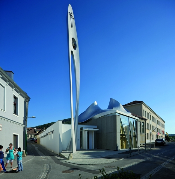 Za méně než rok byl postaven evangelický kostel Martina Luthera v centru dolnorakouského Hainburgu podle návrhu rakouského architektonického studia COOP HIMMELB(L)AU. Tvarem budova připomíná obrovský stůl a celá střešní konstrukce spočívá na čtyřech ocelových sloupech – nohách stolu, strop modlitebny vychází z tvaru zakřivené střechy sousední románské kostnice. Hra se světlem a transparentnost hrají v jinak strohém interiéru hlavní roli. Skleněné fasády otevírají prostor směrem do ulice, shůry světlo přichází třemi otvory. Tři světlíky ve vztahu ke konceptu Trojice v křesťanské tradici pak mohou být interpretovány jako „záměrná náhoda“. Náměstíčku před kostelem dominuje 20 metrů vysoká a 8 tun těžká skulpturální zvonice.