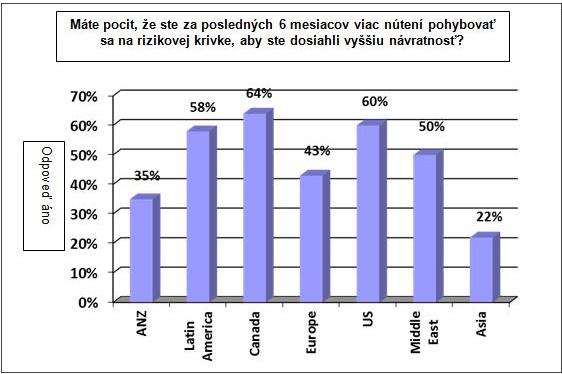 Prieskum, ktorý bol zrealizovaný v prvých dvoch augustových týždňoch 2011 pod vedením oddelenia prieskumu a v spolupráci s divíziou globálnych investičných služieb CI, sa zameral na spomínané ukazovatele v priereze jednotlivých regiónov sveta. Zvýšenie odhodlania prevziať v tomto roku na seba riziko deklarovalo iba 43 % európskych realitných investorov z globálneho 46-percentného priemeru, pričom ich vôľa akceptovať ho sa nezvýšila až u 57 %. Krajinou, ktorá dosiahla rekordný 64-percentný nárast, sa podľa zverejnených údajov stala Kanada.