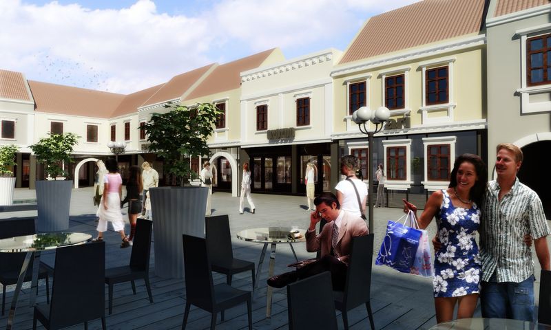 1,2,3,4 – Nákupná a oddychová zóna v budúcom D1 Outlet s kópiami