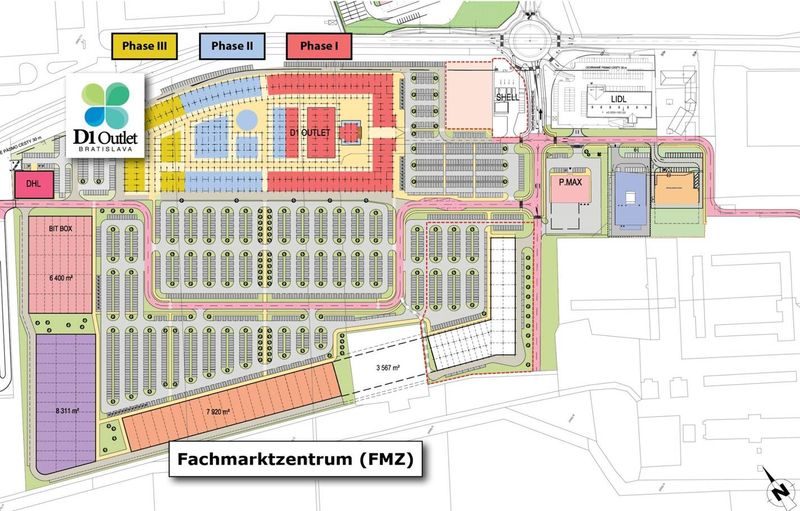Ako sa bude rozvíjať časový harmonogram výstavby? V najbližších mesiacoch má ako prvé vzniknúť námestie, ktoré bude stelesňovať srdce celého outletu, plus ďalšie zazmluvnené prevádzky. Na jeseň 2012 by tak v rámci areálu mali pribudnúť krbové centrum, hobby expres či baby market. Súčasťou komplexu sa stane tiež diaľničná reštaurácia s konceptom známym z rakúskych diaľnic. Stavebné práce na ďalších častiach outletového (8 500 m2) a retailového centra (6 500 m2) budú prebiehať súbežne tak, aby celková predajná plocha (15-tisíc m2) mohla byť ukončená a odovzdaná niekedy na jar 2013.