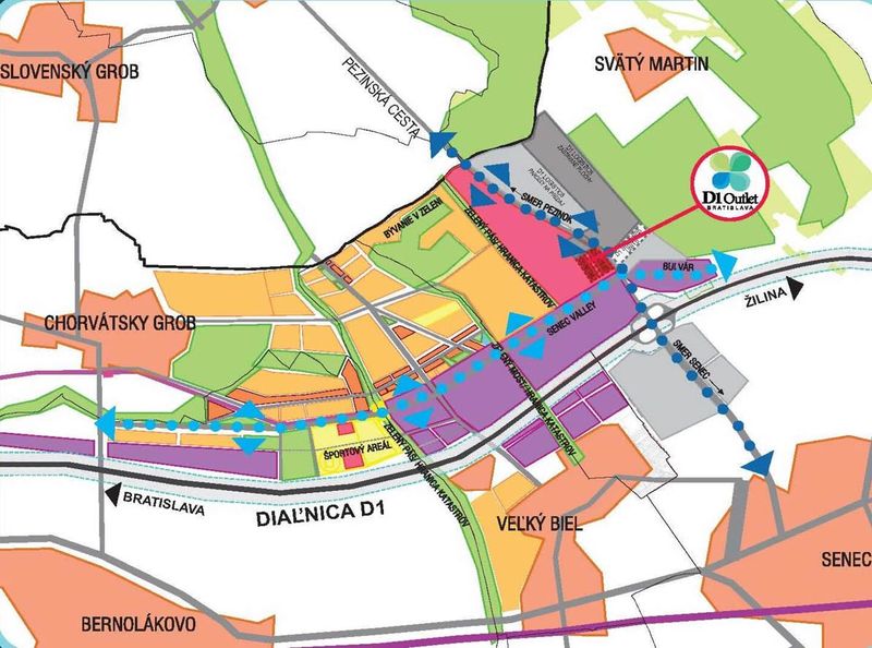 D1 Outlet Bratislava má však podstatne hlbší rozmer než len centrum outletu (predaj posezónneho tovaru stiahnutého z predajní) a retailových prevádzok. V slovenskom kontexte tu zároveň pôjde o významný urbanistický počin, keďže je súčasťou rozvoja širšieho územia v katastri mesta Senec s názvom D1 Park s celkovou rozlohou až 310 ha. Zámerom projektu, ktorý vypracovala Ingrid Konrad ešte pred nástupom do funkcie hlavnej architektky Bratislavy, je vytvoriť na rozsiahlom území regionálne stredisko biznisu, obchodu a služieb, ktoré splní všetky atribúty urbanistického vývoja nového mestského sídla. Tým sa má súčasne predísť problémom a negatívam, ktoré splodila extenzívna výstavba v okrajových zónach Bratislavy či v iných slovenských mestách.