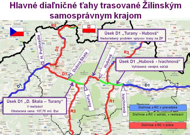 - Úsek D1 Hubová – Ivachnová: vyhlásená verejná súťaž