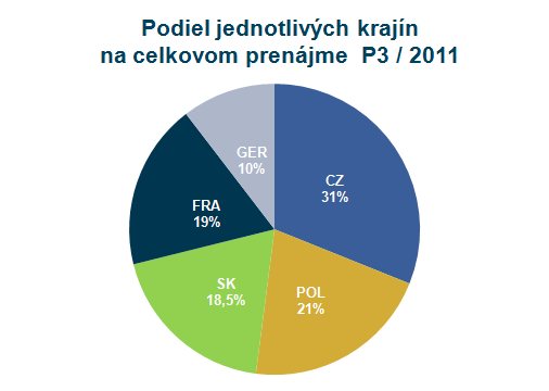 2 – Podiel jednotlivých krajín na celkových prenájmoch P3 za rok 2011