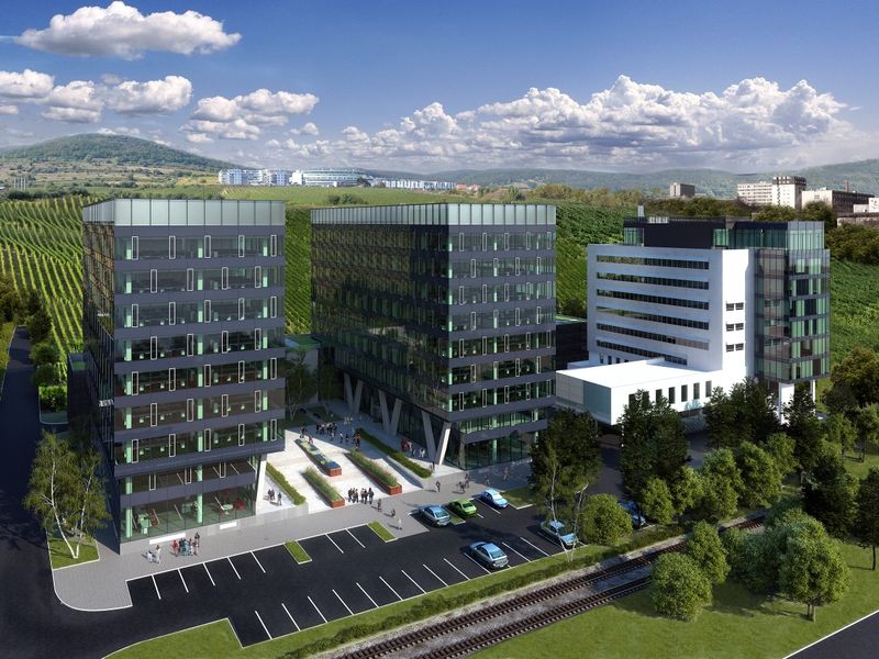 Ako uviedol spoluautor architektonického riešenia a generálny projektant diela Peter Vitko z ateliéru AVK Architects, jedným z kľúčových aspektov sa pri jeho tvorbe stala celková hmotovo-priestorová a urbanistická koncepcia. „Voči Račianskej ulici sme u vyšších objektov zvolili kolmú, u nižších rovnobežnú orientáciu, pretože sme chceli, aby bola prítomnosť viníc a Malých Karpát viditeľná z každého zorného bodu a kontakt s nimi sa nestratil. Zvýraznenie tohto kontextu by mohlo vyvážiť prípadné výhody kancelárskych budov v iných, možno atraktívnejších lokalitách,“ zdôvodnil Vitko a doplnil, že pôdorysná a prevádzková schéma v danom prípade vychádza zo zámeru maximalizovať plošnú dispozíciu, pričom percentuálny pomer 85:15 medzi využiteľnými a nevyužiteľnými priestormi „má každý developer rád“.