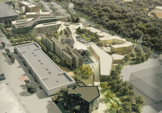 6 námestí. Hranice kampusu budú lemovať stromy, ktoré čiastočne oddelia